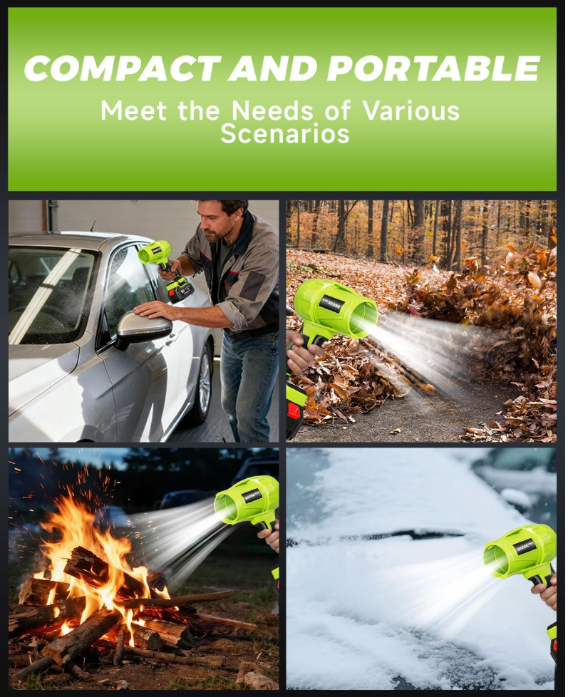 Product Description:Introducing our Small Cordless Leaf Blower a powerful and portable cleaning tool that offers convenience and efficiency like no other. Made from high-hardness and high-temperature resistant materials this mini jet dry blower fan is designed to handle a variety of tasks making it an indispensable addition to your home office or car.Whether youre looking for a powerful air duster to clean your computer keyboard a mini leaf blower for your garden or a compact dryer blower for your car the Small Cordless Leaf Blower is the perfect choice.